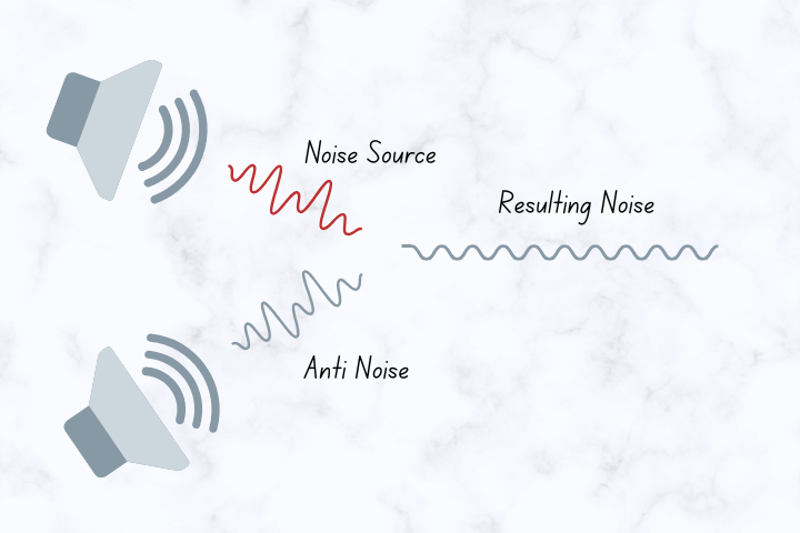 It does so using the device’s microphones (headphones or speakers) to listen for external sounds. The device then generates a reverse sound wave and plays it through the speakers. When the two waves meet, they cancel each other out due to destructive interference.